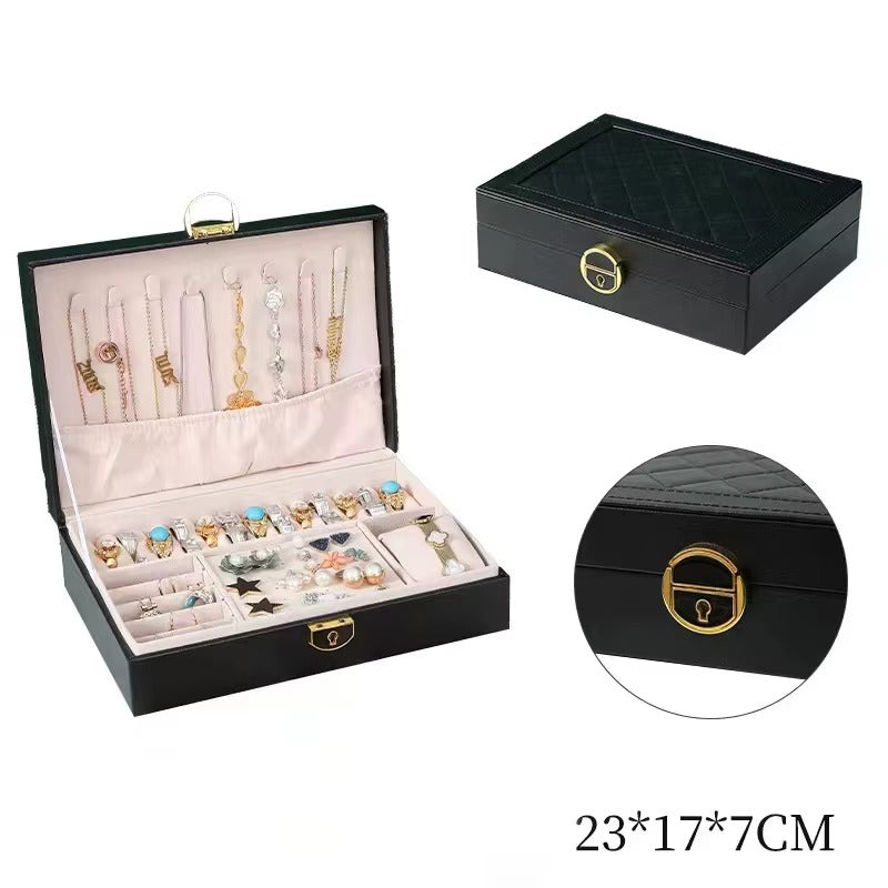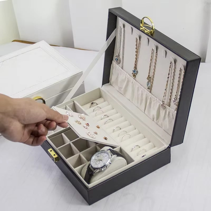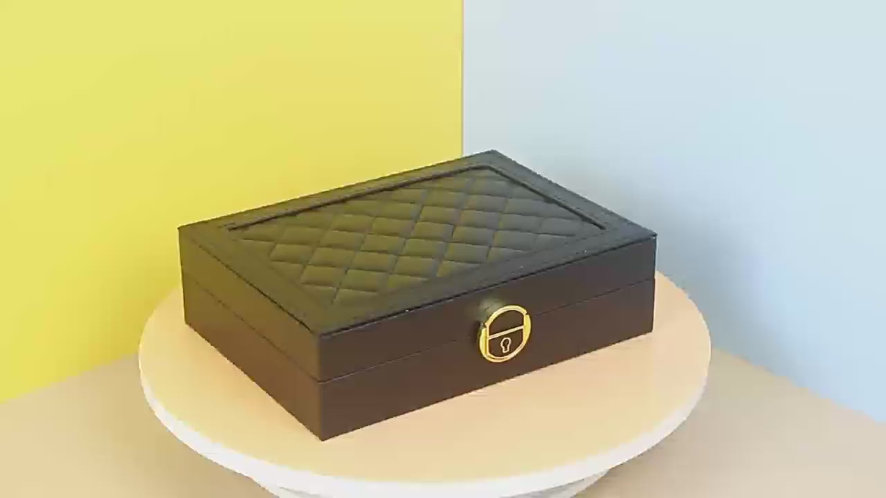 "Mantén tus accesorios organizados y seguros con este joyero de un solo nivel, perfecto tanto para el uso diario como para tus viajes. Fabricado con materiales duraderos de alta calidad, esta caja te garantiza una protección a largo plazo para tus joyas más preciadas.
