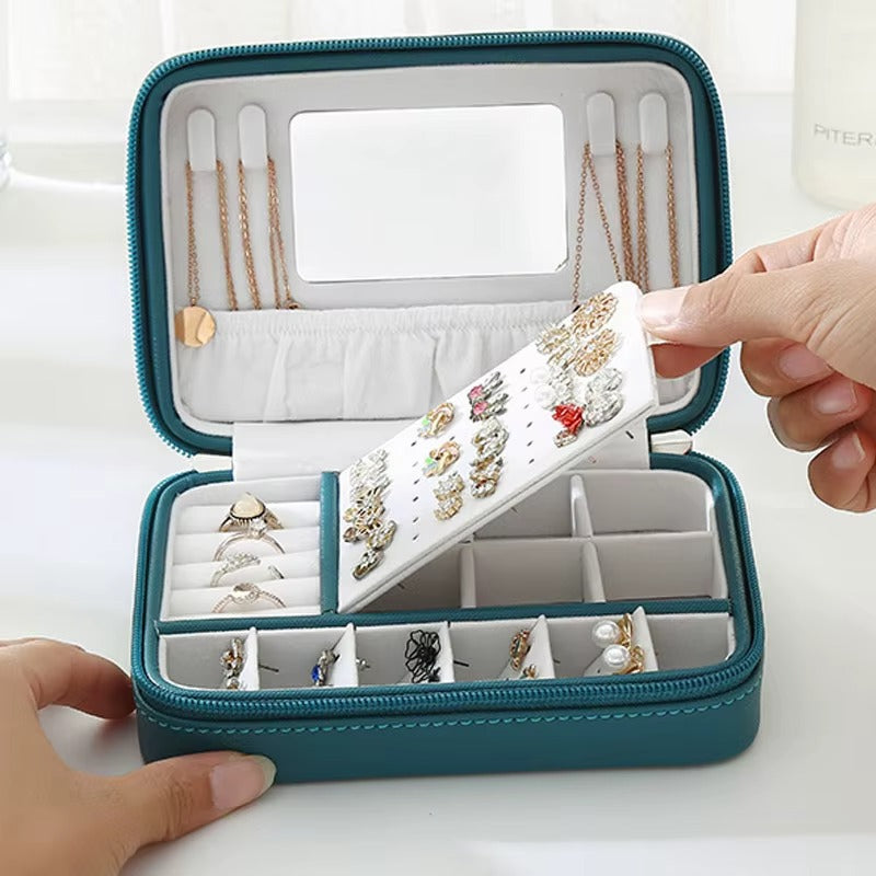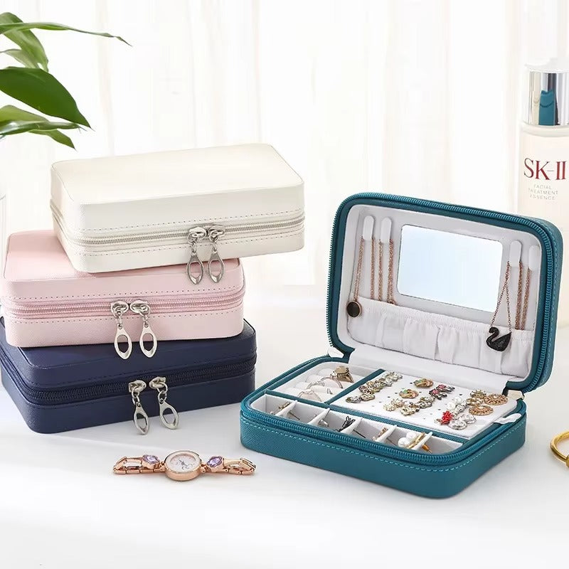 Minioyero de Viaje con Espejo y Aretero de Cierre Cremallera, Modelo J07